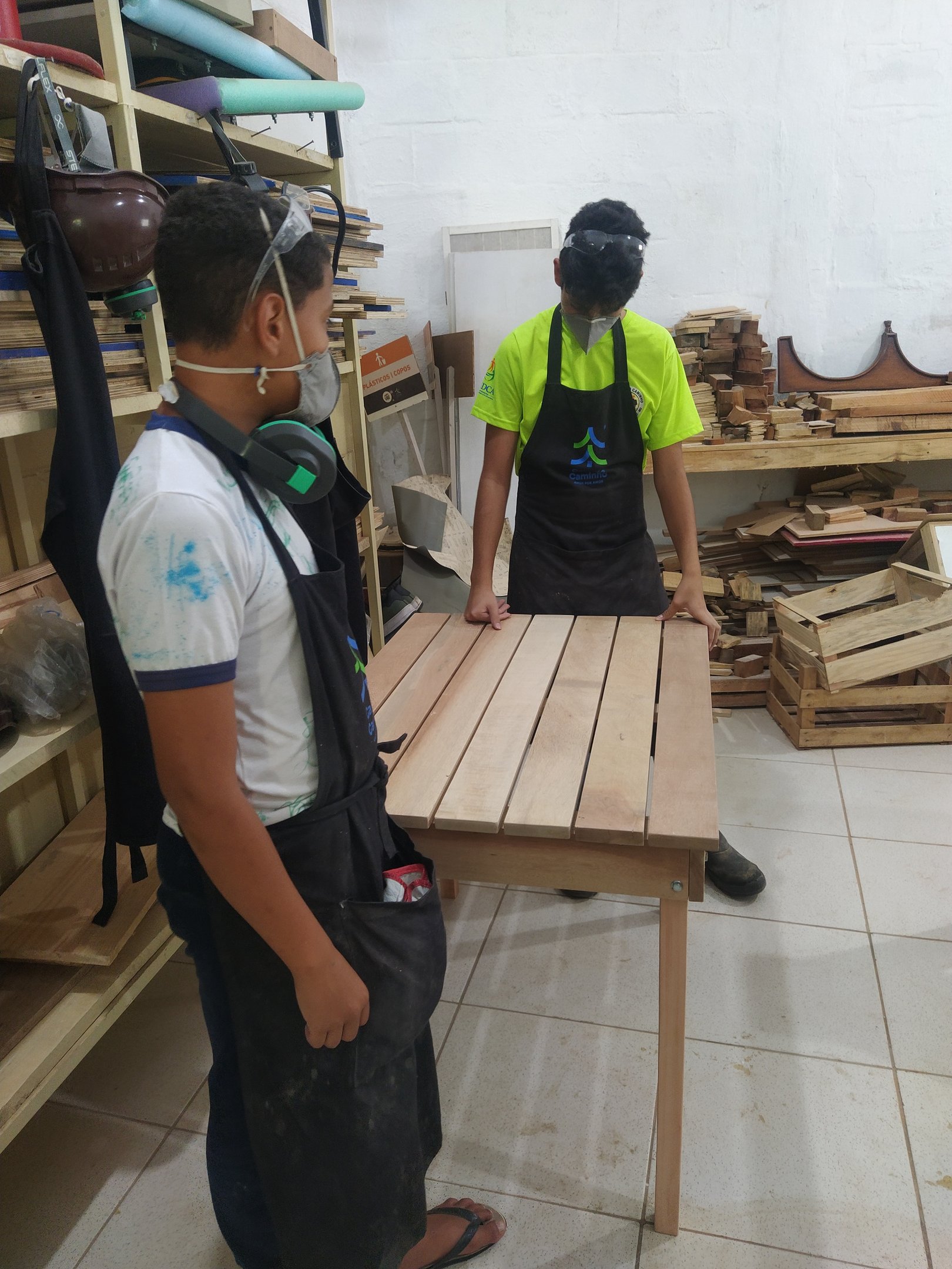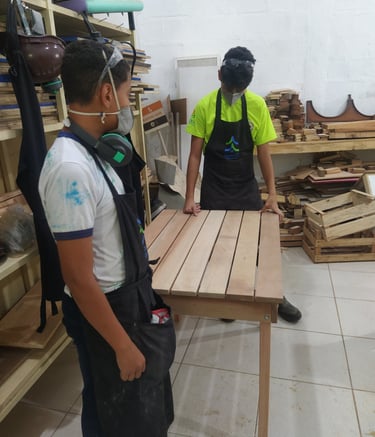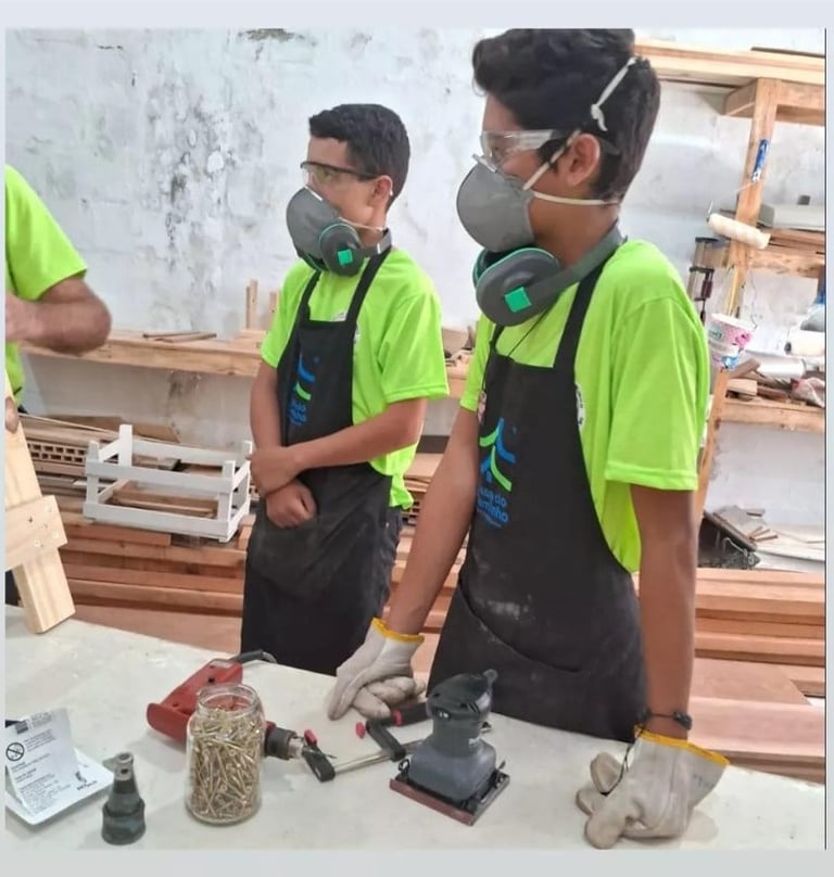 Um espaço para aprender habilidades práticas, como o uso de ferramentas e técnicas de madeira, ao mesmo tempo que estimula a criatividade, o trabalho em equipe e a autonomia.